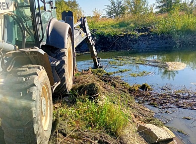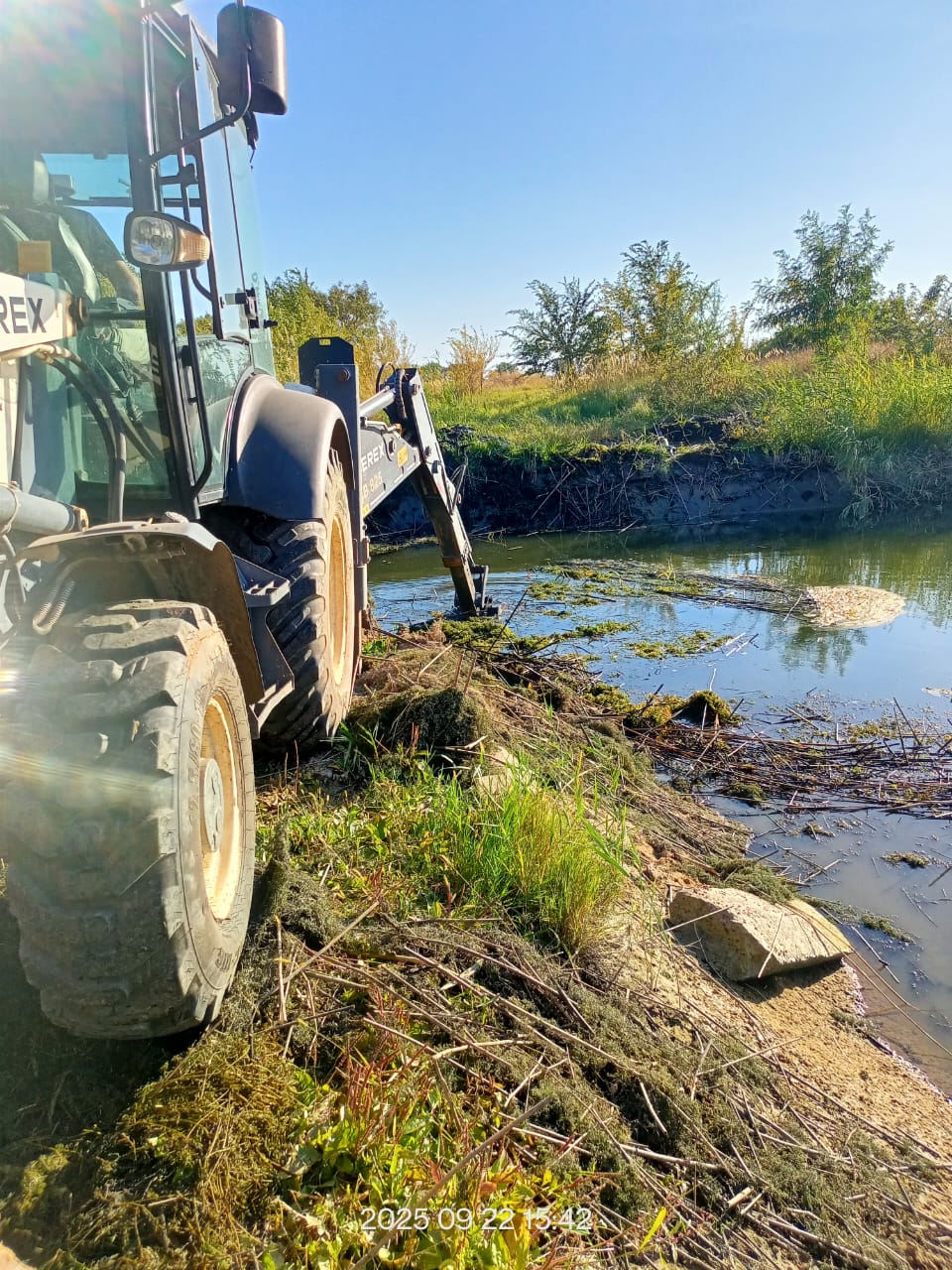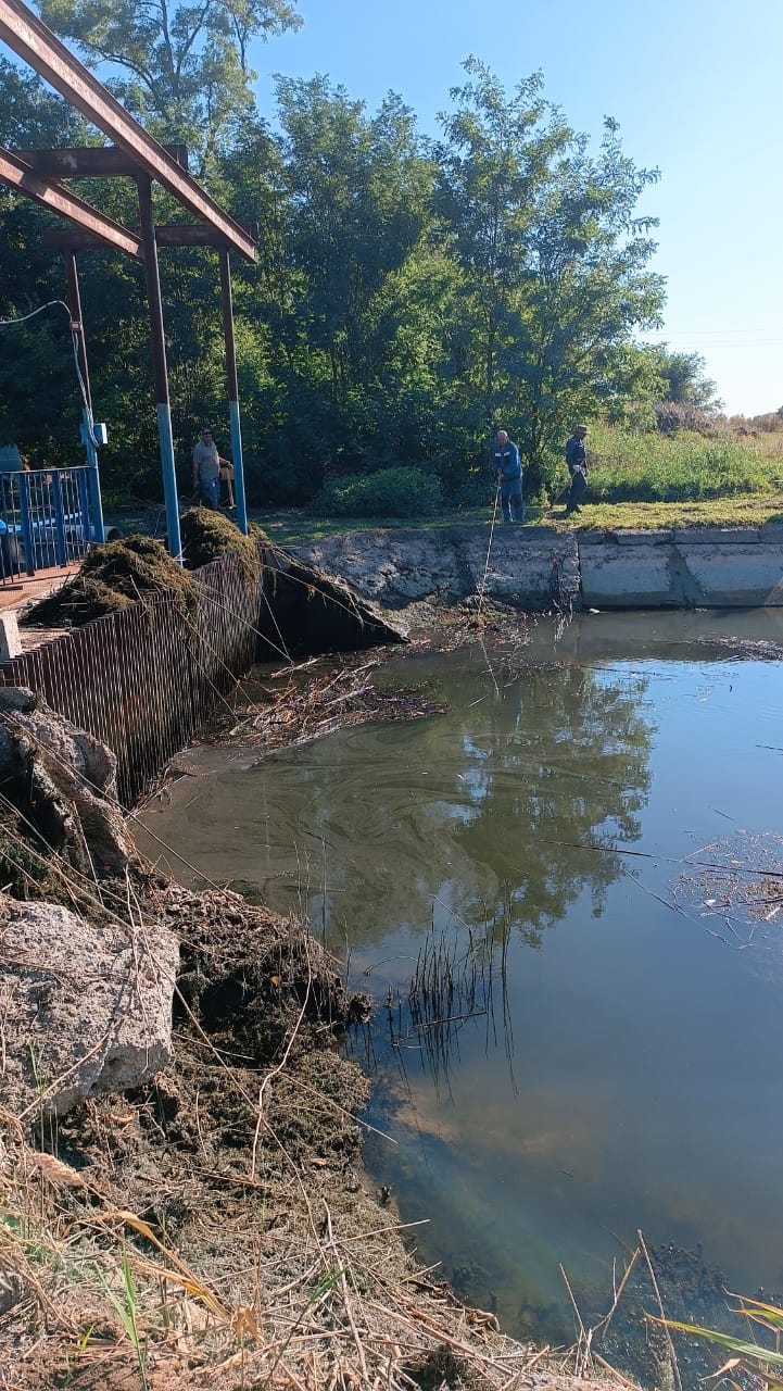 Борьба за чистоту каналов. Чтобы вода доходила до полей без потерь, мы боремся с тиной и засорами. Для этого на регулярной основе задействуем и технику, как экскаватор TLB-825, и целые бригады наших сотрудников.