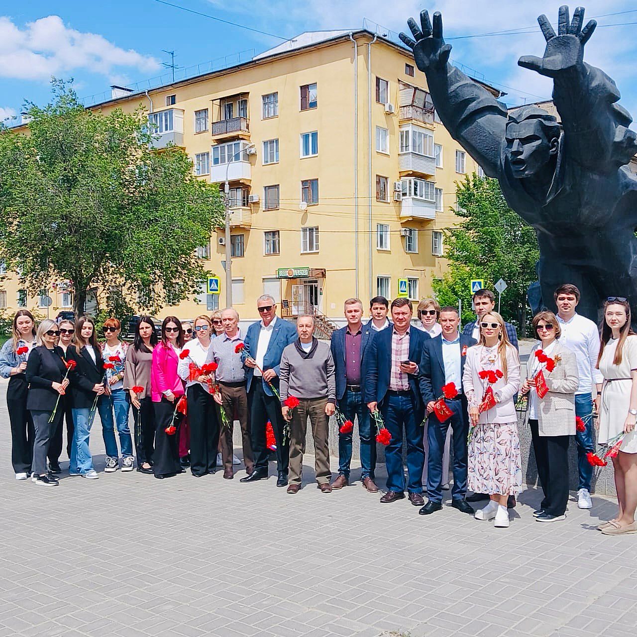 Делегация ФГБУ «Управление «Волгоградмелиоводхоз» совместно с представителями ТУ Росимущества, АО «Волговодпроект» и ВНИИОЗ почтила память погибших минутой молчания и возложила цветы к памятнику Михаилу Паникахе.