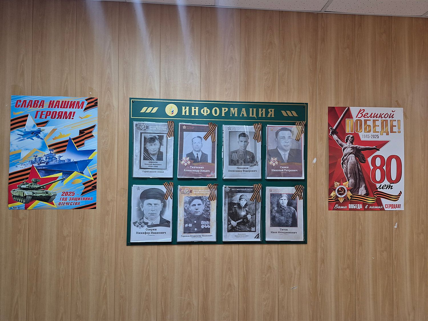 Сотрудники Управления установили «Стены памяти» для портретов ветеранов, украсили окна в рамках всероссийской акции «Окна Победы» и подготовили стенгазеты о значимых событиях истории.