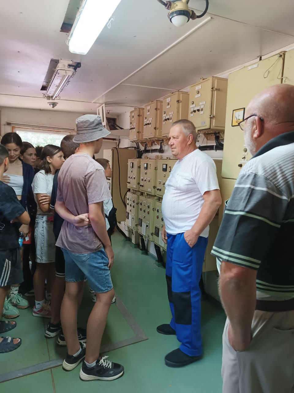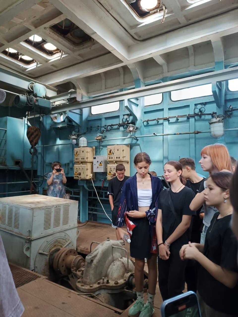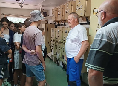 Далее группа отправилась к плавучей насосной станции «Роса-214», которая является настоящим сердцем местной оросительной системы. Специалисты филиала (директор Хромов П.В. и машинист насосных установок Проценко А.Н.) подробно рассказали о принципах работы станции, её мощности и о том, как она доставляет воду из реки на дальние поля. Особый интерес у ребят вызвало знакомство с профессиями инженера-мелиоратора и оператора насосных установок.